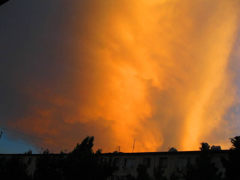Вот такие облака. Снимала старым телефоном из окна.Дальше вправо такие же завитки. Всё в кадр не влезло.