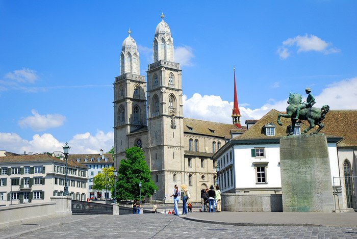 В деловой столице Швейцарии, расположенном в предгорьях Альп на берегах реки Лиммат городе Цюрихе, главной городской достопримечательностью является величественный Большой кафедральный собор, или как его чаще называют местные жители - Гроссмюнстер (нем. - Großmünster).